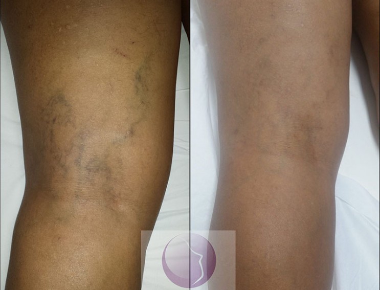 Método NDyag, tecnologia esta que reconhece a cor dos vasos (Hemoglobina), passando o feixe de luz pela pele sem causar lesões e aquecendo os vasos sanguíneos que serão eliminados pelo calor e reabsorvidos pelo organismo. Na maioria dos casos, o tratamento varia de 2 a 4 sessões sendo feita uma a cada 45 a 60 dias. O efeito do tratamento pode ser observado logo após a primeira sessão conforme foto abaixo que foi tirada antes, imediatamente após e 30 minutos após o término da sessão.